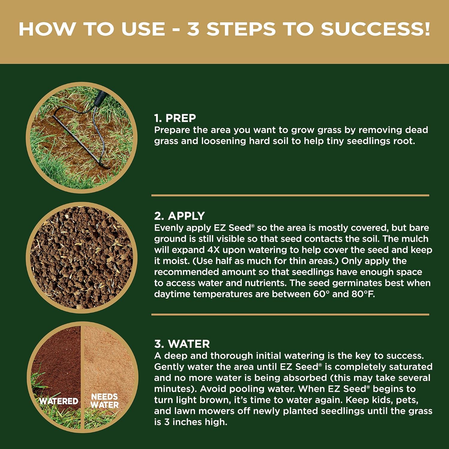 🌱 3-in-1 Formula – Premium seed, mulch, and fertilizer in one easy mix